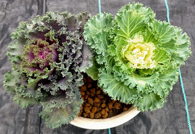 ハボタン(葉牡丹)は花が少ない冬の花壇や寄せ植えに欠かせないカラーリーフ。