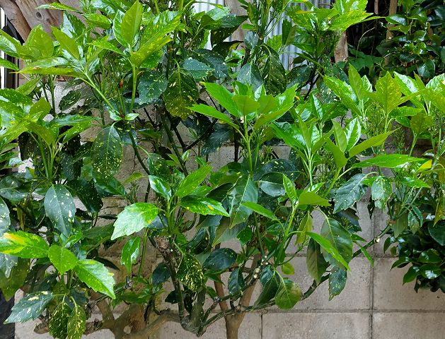 アオキ(青木)は光沢のある大きな葉が美しく日陰でも育つ丈夫な庭木です。